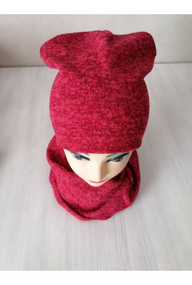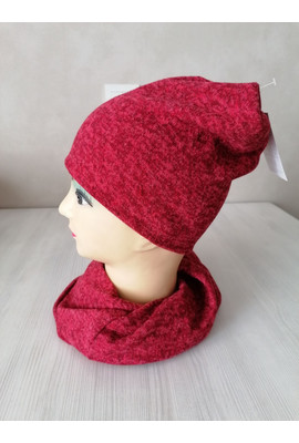 Главная страница Женские шапки Осень-Зима Трикотажные шапка и хомут - 22218 красный меланж