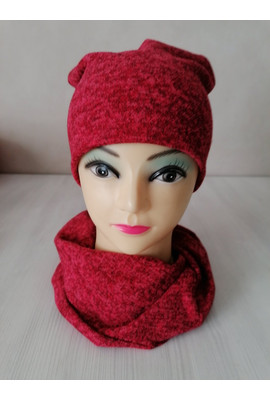 Изображения Трикотажные шапка и хомут - 22218 красный меланж - Интернет-магазин - ELENKA