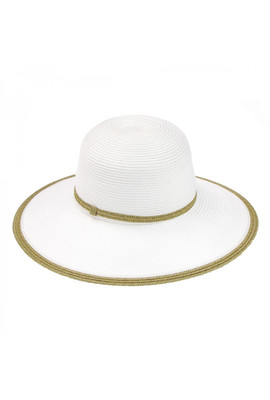 Белая широкополая шляпа с люрексовой отделкой золотом - 141-02.43