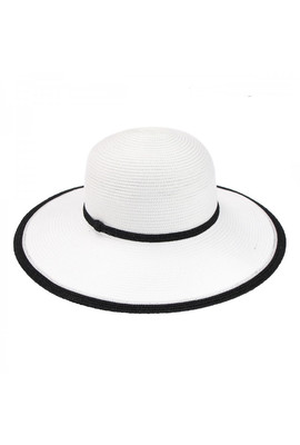 БЕЛАЯ ШИРОКОПОЛАЯ ШЛЯПА С ЧЁРНОЙ ЛЮРЕКСОВОЙ ОТДЕЛКОЙ - 141-02.01