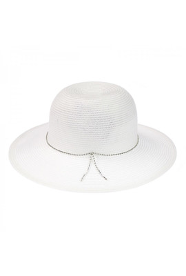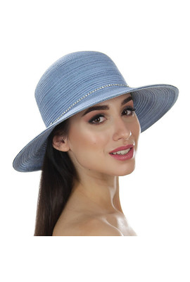 Женская шляпа Del Mare Модель: 145 Цвет: 02 Состав: capron, polyester Ширина поля: 7 см. Диаметр шляпы: 33 см. Высота тульи: 9 см. Размер: 56-58 Цвет основной: голубой. Цвет дополнительный: нет. Аксессуар: лента из страз. Детали: пластиковый каркас.