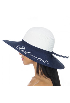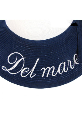 Женская шляпа Del Mare Модель: 156 Цвет: 02.05 Состав: capron, polyester Ширина поля: 12,5 см. Диаметр шляпы: 42 см. Высота тульи: 10 см. Размер: 56-58 Цвет основной: белый. Цвет дополнительный: синий. Аксессуар: вышивка.