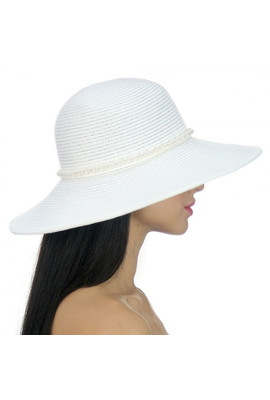 ЛЕТНЯЯ ШЛЯПА С ЖЕМЧУЖНОЙ НИТЬЮ - 149-02 белый