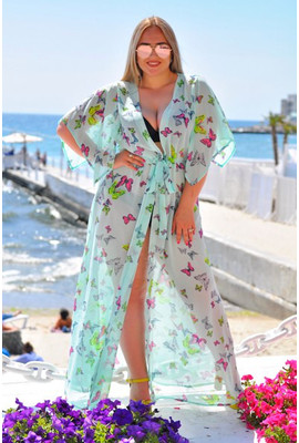 ТУНИКА В ПОЛ БОЛЬШОГО РАЗМЕРА "БАБОЧКИ" - 8056-14 мятный
