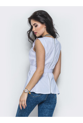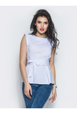 Приталенная блузка без рукавов с круглым вырезом горловины. Застегивается сзади на молнию по всей длине. Комплектуется поясом из основной ткани. Замеры изделия в 44 размере: длина по спинке - 60 см; Материал: Хлопок Состав: 100% хлопок Растяжимость: ср...
