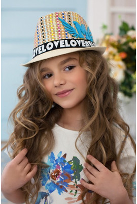 Детская разноцветная шляпка-челентанка "Love" - 1811 светло-бежевый, р. 50-52