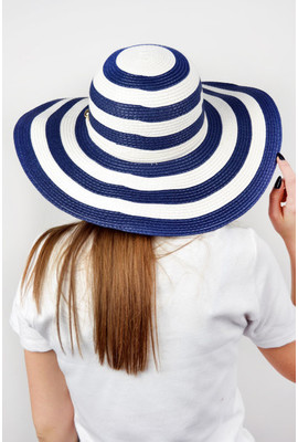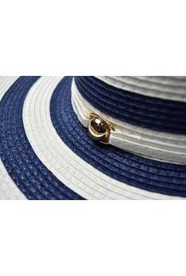 Женская шляпа Del Mare Модель: 041401.005 Цвет: белый, молочный, синий. Состав: capron, paper, polyester Ширина поля: 10 см. Диаметр шляпы: 35 см. Высота тульи: 10 см. Размер: 56-58 Детали: моделируемое поле, размер регулируется шнурком