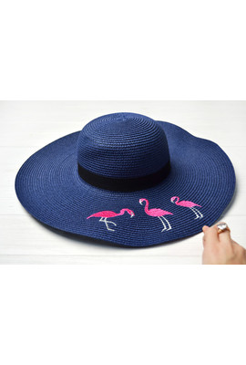 Объем 55-56 см, ширина поля 14 см. Большие поля позволяют укрыться от солнечных лучей в жаркий летний день. Украшение в виде вышивки придает модели изысканный и неповторимый вид.