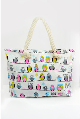 ЛЕТНЯЯ СУМКА В ПРИНТ "птички" - SYM-1810 молочный