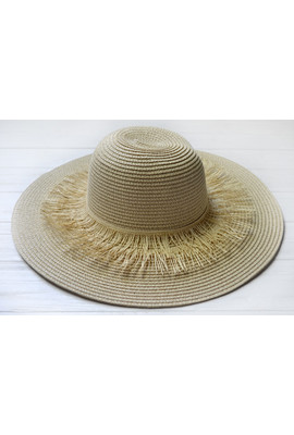 Главная страница Женские летние шляпы и кепки Широкополая шляпа с бахромой "Малайзия" - 1848 бежевый