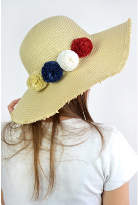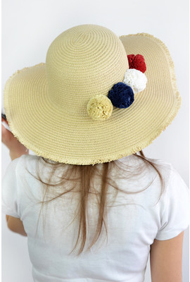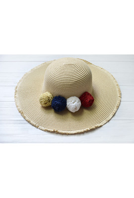 Главная страница Женские летние шляпы и кепки Шляпа c украшением цветные помпоны "Девон" - 1819 песочный