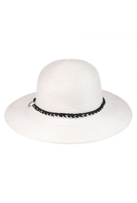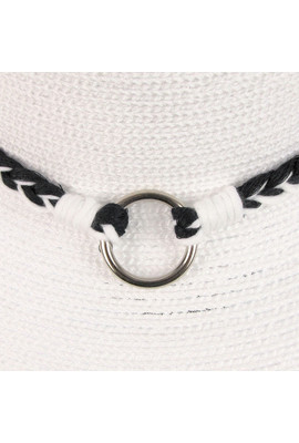 Женская шляпа Del Mare Модель: 151 Цвет: 02.01 Состав: capron, polyester Ширина поля: 9 см. Диаметр шляпы: 34 см. Высота тульи: 10 см. Размер: 56-58 Цвет основной: белый. Цвет дополнительный: черный. Аксессуар: коса. Детали: пластиковый каркас. Летом б...