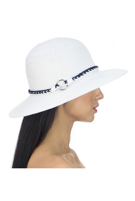 ЖЕНСКАЯ ЛЕТНЯЯ ШЛЯПА СО СРЕДНИМ ПОЛЕМ - 151-02.05 БЕЛЫЙ+СИНИЙ