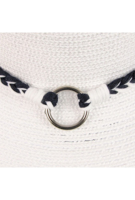Женская шляпа Del Mare Модель: 151 Цвет: 02.05 Состав: capron, polyester Ширина поля: 9 см. Диаметр шляпы: 34 см. Высота тульи: 10 см. Размер: 56-58 Цвет основной: белый. Цвет дополнительный: синий. Аксессуар: коса. Детали: пластиковый каркас. Летом бе...