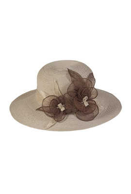 ЛЕТНЯЯ ШЛЯПА ОТДЕЛКОЙ В ВИДЕ ЦВЕТОВ ИЗ СИНАМЕЙ - 004.23 бежевый