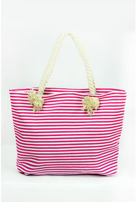 ЛЕТНЯЯ ПЛЯЖНАЯ СУМКА В ПОЛОСКУ "МАДРИД" - 1809 БЕЛО-РОЗОВЫЙ