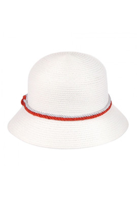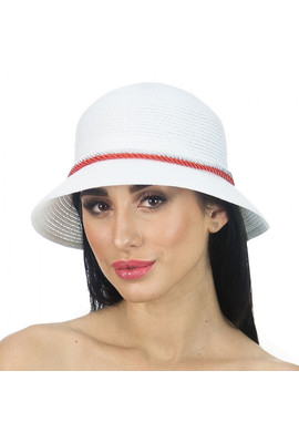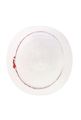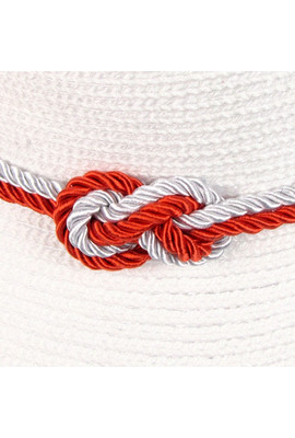 Женская шляпа Del Mare Модель: 147 Цвет: 02.13 Состав: capron, polyester Ширина поля: 7 см. Диаметр шляпы: 28 см. Высота тульи: 10 см. Размер: 56-57 Цвет основной: белый. Цвет дополнительный: красный. Аксессуар: канат с морским узлом. Детали: моделируе...