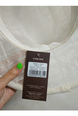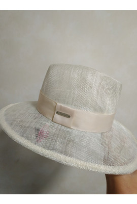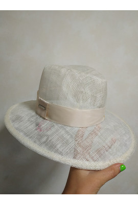 Женская шляпа Del Mare Модель: 135 Цвет: 02 Состав: capron, polyester Ширина поля: 13,5 см. Диаметр шляпы: 42 см. Высота тульи: 10 см. Размер: 56-58 Цвет основной: белый. Цвет дополнительный: нет. Аксессуар: лента в тон, отделка стразами. Детали: пласт...