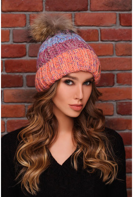 Модная шапка из меланжевой пряжи "Ника" - 421-142 персик-сирень-голубой