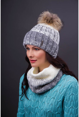 Теплая зимняя шапка с натуральным меховым помпоном.