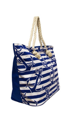 Главная страница Пляжные сумки Полосатая сумка с якорями - 5112 синий