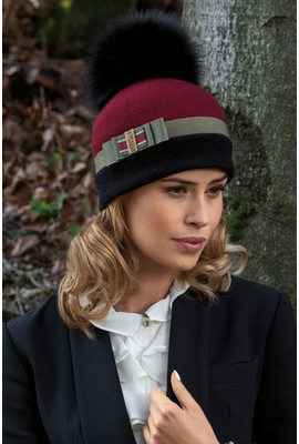 Трёхцветная шапка с помпоном "Петролама" (Petrolama) - 144 вишнёвый