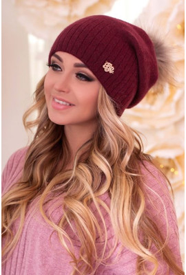 ШАПКА ИЗ АНГОРОВОЙ ПРЯЖИ "НИМФЕЯ" - 4563 бордовый - Интернет-магазин - ELENKA