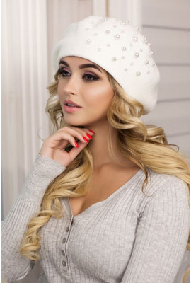 Берет, расшитый крупными бусинами "Мартина" - 6004 белый