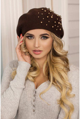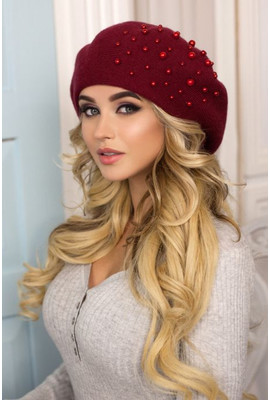БЕРЕТ, РАСШИТЫЙ КРУПНЫМИ БУСИНАМИ "МАРТИНА" - 6004 бордовый - Интернет-магазин - ELENKA