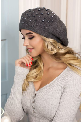 БЕРЕТ, РАСШИТЫЙ КРУПНЫМИ БУСИНАМИ "МАРТИНА" - 6004 джинс
