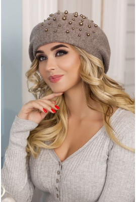 БЕРЕТ, РАСШИТЫЙ КРУПНЫМИ БУСИНАМИ "МАРТИНА" - 6004 тёмный кофе