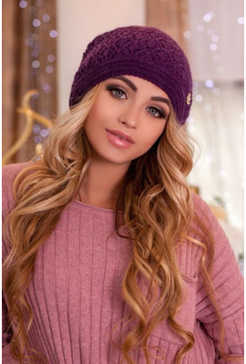 ЗИМНЯЯ ШАПКА АЖУРНОЙ ВЯЗКИ "ВЕРОНА" - 4512 фиолетовый - Интернет-магазин - ELENKA