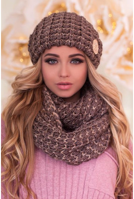 Главная страница Женские шапки Осень-Зима ШИКАРНЫЙ ЖЕНСКИЙ КОМПЛЕКТ "КОСМЕЯ" (ШАПКА И СНУД-ВОСЬМЁРКА) - 4619-8 светло-коричневый+золото