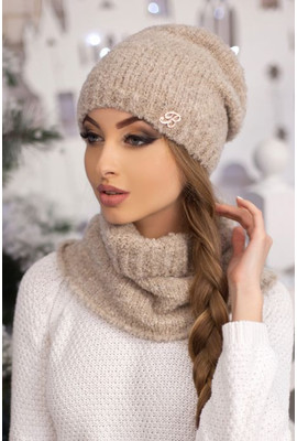 ЖЕНСКИЙ КОМПЛЕКТ ИЗ МЯГКОГО БУКЛЕ "ШАРЛИН" (ШАПКА И ШАРФ-ТРУБА) - 4368-8 липа