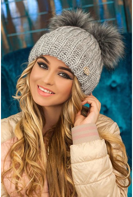 ЗИМНЯЯ ШАПКА С ДВУМЯ ИГРИВЫМИ БУБОНАМИ-УШКАМИ "ЛЮДИСИЯ" - 4377 светло-серый