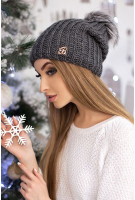 Изображения ШАПКА С ПЫШНЫМ ПОМПОНОМ ИЗ НАТУРАЛЬНОГО МЕХА ЧЕРНОБУРКИ "РОБЕРТА" - 4367 тёмно-серый - Интернет-магазин - ELENKA