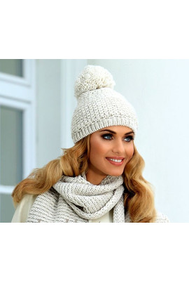 Главная страница Женские шапки ТМ Kamea Шапка и шарф крупной вязки с пайетками "Молли" - цвет экрю (молочный)