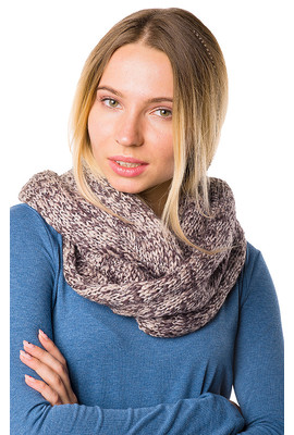 - Женский шарф-снуд с перекрутом. Изделие выполнено из смеси шерсти и акрила. Модель декорирована меланжевым эффектом. Будет хорошо дополнять образ и согревать от холодной погоды.