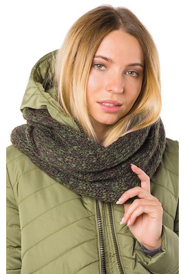 - Женский шарф-снуд с перекрутом. Изделие выполнено из смеси шерсти и акрила. Модель декорирована меланжевым эффектом. Будет хорошо дополнять образ и согревать от холодной погоды.