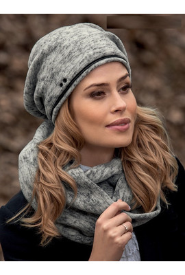 Женский берет из трикотажного шерстяного полотна, на подкладе из флиса. В комплекте идёт шарф-восьмёрка в цвет берета. Размер: 56-59 Состав: 70% шерсть, 30% полиамид Производство Польша.