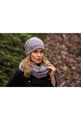 Главная страница Шапки ТМ Willi Невероятно мягкий и тёплый комплект из ткани "букле" "Зала" (шапка+шарф-хомут) - В2М синий меланж, В3 светло-розовый