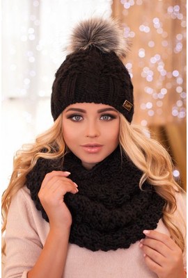 Изображения Роскошный комплект толстой вязки "Сара" - 4381 чёрный - Интернет-магазин - ELENKA