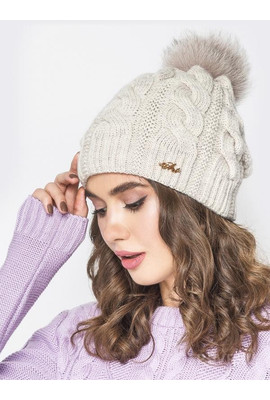 ЗИМНЯЯ ШАПКА ПЛЕТЕНИЕМ "КОСЫ" - 97122/5 светло-бежевый