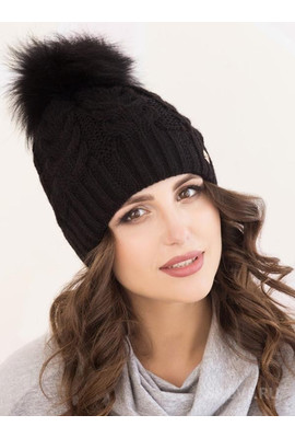 Главная страница Женские шапки Осень-Зима Чёрная шапка с помпоном - 97118-11