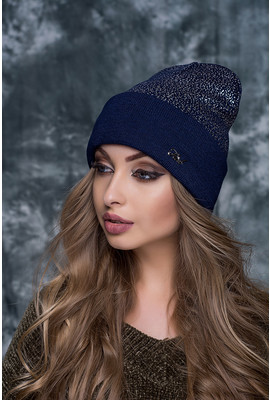 Молодёжная шапка-бини с напылением "Олли" - 1577 тёмно-синий