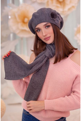 Главная страница Женские шапки Осень-Зима ВЯЗАНЫЙ БЕРЕТ И ШАРФ "АРМАНДА" - 6001-10 тёмно-серый