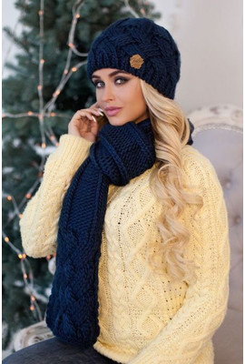 ШАПКА И ШАРФ КРУПНОЙ ВЯЗКИ "ДЮРАН" - 4601-10 тёмно-синий