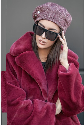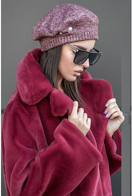 ВЯЗАНЫЙ БЕРЕТ С ФЛИСОМ - 209 БОРДОВЫЙ МЕЛАНЖ