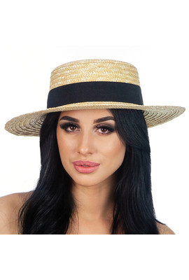 Главная страница Женские летние шляпы и кепки Соломенное канотье с широким полем - 143А-43