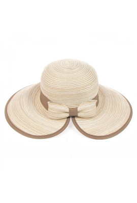 Элегантная шляпа от солнца с бантом на затылке - 158-10.32 бежевый+коричневый